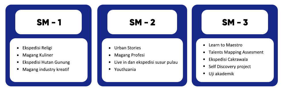 Program Sekolah Menengah merupakan program Pendidikan setingkat SMP. Fokus pembelajaran pada proses pendampingan menemukan diri dan merancang peta hidup siswa.