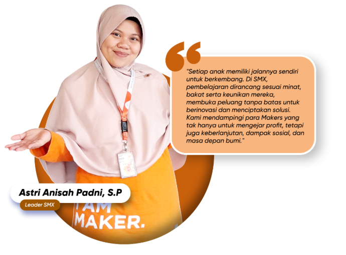 Di SMX School of Maker, siswa diberikan ruang untuk berekspresi melalui karya. Mengasah potensi diri dengan membangun mentalitas yang kuat dan mandiri. Melalui metode pembelajaran Project Based Learning (PBL), setiap subjek pembelajaran terintegrasi pada proyek siswa yang berbeda di setiap semesternya.